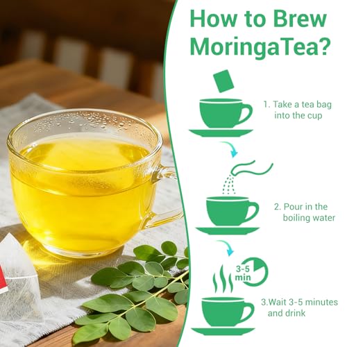Moringa Tea, 100% Pure & Natural Moringa Leaves Herbal Tea Bags, Supporting Digestion & Immune System, Additive Free, Sugar Free, Non-GMO