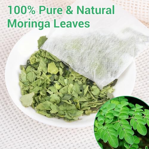 Moringa Tea, 100% Pure & Natural Moringa Leaves Herbal Tea Bags, Supporting Digestion & Immune System, Additive Free, Sugar Free, Non-GMO
