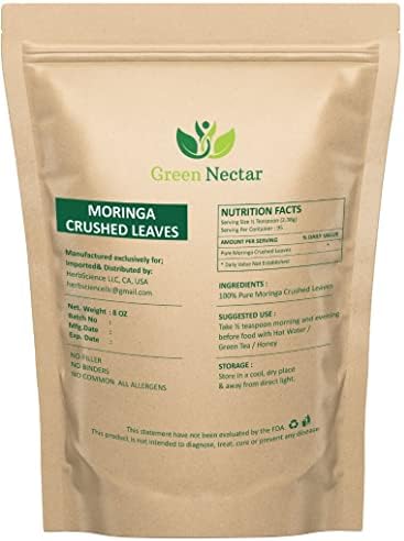 Moringa Tea Cut Leaves 8 Ounces(0.5 lb), Rich Source of Antioxidants – Green Nectar