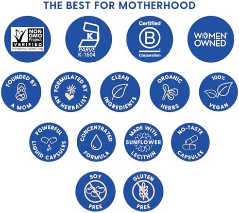Motherlove Difference: More Milk Special Blend is soy-free (made with sunflower lecithin), vegan, Non-GMO Project Verified, Kosher Certified by Kof-K, made with organic herbs, and is made in the USA with imported ingredients. Manufactured in an NSF-registered GMP facility. Motherlove is a certified Women-Owned B-Corp that focuses on environmental and social sustainability.
