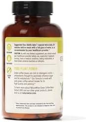 Green coffee bean extract is extracted from raw, unroasted coffee beans, which have a higher level of chlorogenic acid than roasted beans. Chlorogenic acid is a powerful antioxidant that may provide support for healthy metabolism, weight, and eating habits.* This makes green coffee bean extract a popular natural supplement for supporting your weight goals.* Our formula contains 800 mg of pure green coffee extract per serving, a standardized extract with a potent 50% concentration of chlorogenic acids. One of the most appealing aspects of NatureWise Green Coffee Bean Extract supplement is its remarkably low caffeine content. While coffee enthusiasts may seek out the caffeine rush from a cup of coffee, many seek to minimize their caffeine intake to avoid the jittery side effects often associated with excessive caffeine consumption. Our extract contains less than 2% caffeine, which is only 13 mg per 800 mg serving—equivalent to the caffeine content found in two 8 oz cups of decaf coffee. This modest caffeine presence not only distinguishes our supplement as a viable option for those sensitive to stimulants but also ensures that you can enjoy its energizing effects without the risk of experiencing unwanted jitters or nervousness.* When taken in conjunction with a healthy, balanced diet and an active lifestyle, NatureWise Green Coffee Bean Extract capsules can help you reach those weight goals while providing antioxidant benefits.* Made only from pure green coffee bean extract in vegetable capsules, this supplement is vegan, non-GMO, and third-party tested for purity. NatureWise Green Coffee Bean Extract does not contain wheat, gluten, soy, tree nuts, peanuts, eggs, dairy, corn, fish, or shellfish.