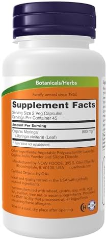 Made with Organic Moringa Free Radical Protection* Moringa (Moringa oleifera) is a tree native to India, Pakistan and Bangladesh that has been used as an important nutrient dense food source. Moringa has been studied for its health properties, which are attributed to its numerous naturally occurring bioactive components, including phenolic acids, flavonoids, isothiocyanates, tannins and saponins.* NOW® uses only non-GMO organic moringa leaf. Natural color variation may occur in this product.