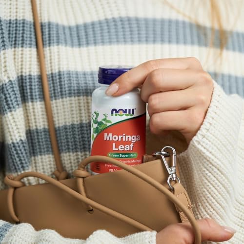 NOW Supplements, Moringa Leaf, Green Super Herb, Made with Organic Moringa, Free Radical Protection*, 90 Veg Capsules