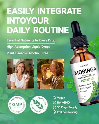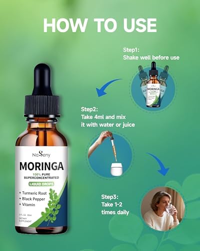 【More Efficient Absorption】NaSeny Moringa Supplement delivers 1000mg of Moringa per day in just 2ml. Each serving contains pure organic Moringa extract in a convenient liquid form, enhancing absorption and potency, with up to 98% of nutrients delivered directly to your cells for optimal year-round health
