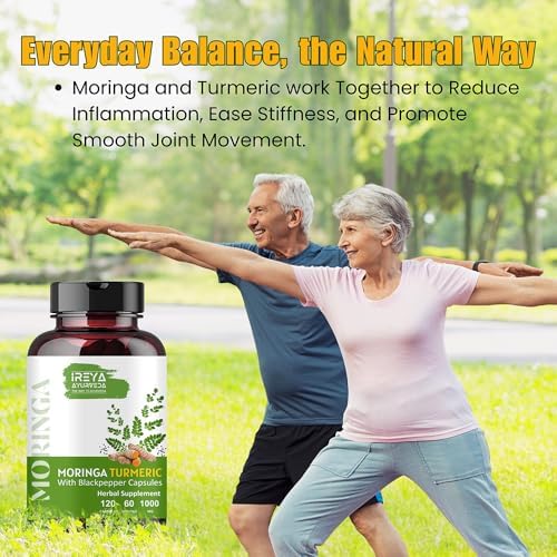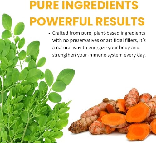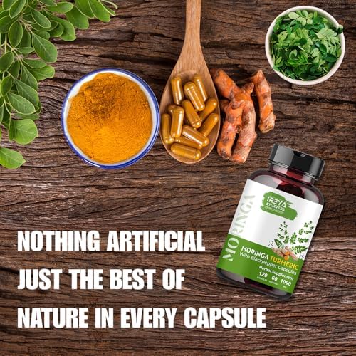 Organic Moringa Oleifera Powder & Turmeric Root Powder with Blackpepper 120 Capsules | Made with Organic Moringa, Turmeric and Black Pepper | Vegan, Gluten-Free and Non-GMO.