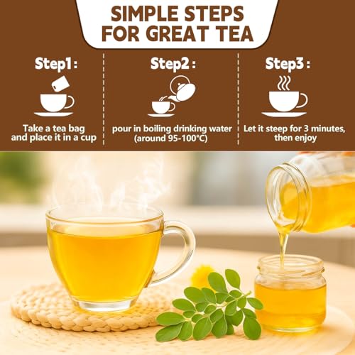 Easy to Brew: Simply steep one organic moringa tea bag in hot water for 2-3 minutes to enjoy a perfect cup of Moringa tea. Each bag contains 3 grams of Moringa leaves, can be steeped multiple times without losing flavor. You can also add honey or lemon to taste according to your preference
