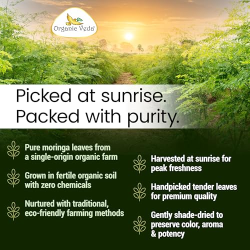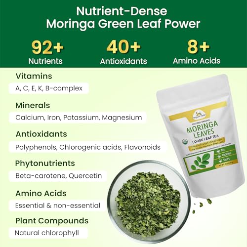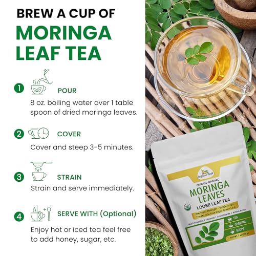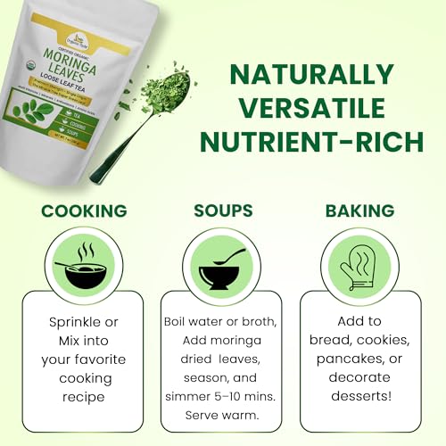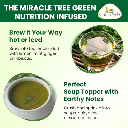 Delicious Earthy Flavor: Enjoy the earthy, satisfying taste of Organic Veda moringa loose-leaf tea. Naturally vegan, Non-GMO, and gluten-free, this Moringa oleifera herbal tea delivers both flavor and functionality, making each sip a moment of nourishment and delight.