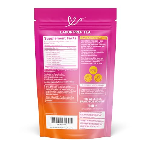 Pink Stork Organic Red Raspberry Leaf Labor Prep Tea – Mango-Pineapple with Nettle, and Moringa – Third Trimester Pregnancy Tea – Labor and Delivery Essentials for Women, 30 Cups