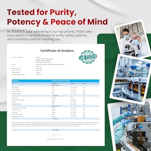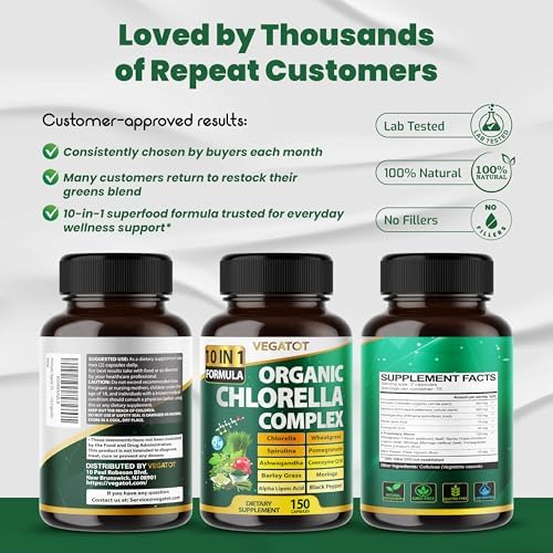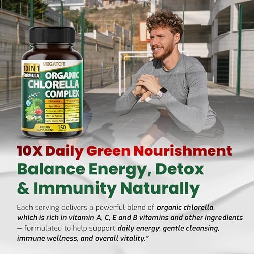Modern eating habits don’t always leave room for a variety of green, nutrient-dense foods. VEGATOT Organic Chlorella Complex is a 10-in-1 greens and antioxidant blend designed to help top up your daily routine with organic Chlorella, Spirulina, grasses, botanicals and fruit extracts—all in convenient capsules.* Each serving delivers Organic Chlorella and Spirulina along with Wheatgrass, Barley Grass, Moringa, Pomegranate, Ashwagandha, Coenzyme Q10 and Alpha Lipoic Acid, plus Black Pepper for absorption support. This combination helps support overall wellness, antioxidant defenses and everyday cellular energy, alongside a balanced diet and active lifestyle.* The formula uses vegetable capsules, includes organic greens, is Non-GMO, gluten free and lab-verified, with clearly listed ingredient amounts and no unnecessary fillers. With 150 capsules per bottle and a simple 2-capsule daily serving, it’s easy to keep this greens and antioxidant complex in your long-term wellness stack.* *These statements have not been evaluated by the Food and Drug Administration. This product is not intended to diagnose, treat, cure, or prevent any disease.
