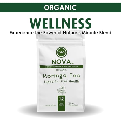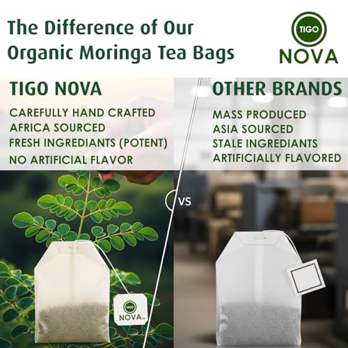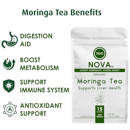 Premium Organic Moringa Tea Bags, 100% Natural and Organic Ingredients, Caffeine free | Authentic African Origin | Eco-conscious Teabags (15 count) Immune System & Digestion Support Herbal Tea