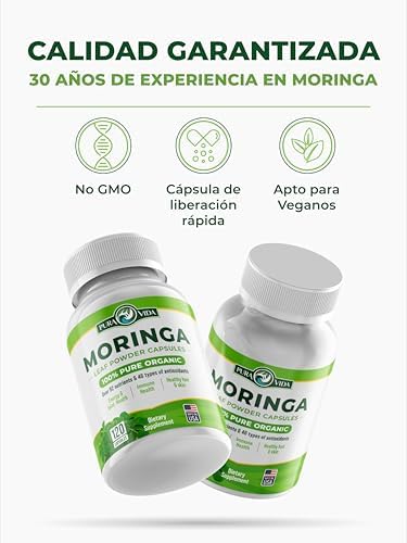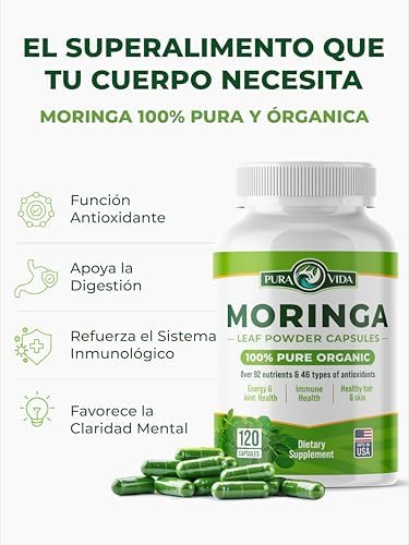 PURA VIDA MORINGA Capsules Single Origin Moringa Powder Organic. Pure Moringa Leaf. Energy, Metabolism, & Immune Support. 120ct. 500mg Caps.