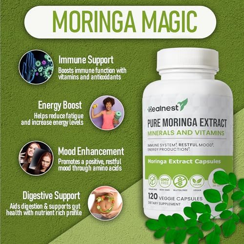 Pure Moringa Extract Capsules – 20:1 (20,000 mg) Potent Formula – Vegan Superfood Supplement with Vitamins & Minerals – Energy, Immunity, Digestion & Mood Support – 120 Capsules – Non-GMO, Gluten-Free