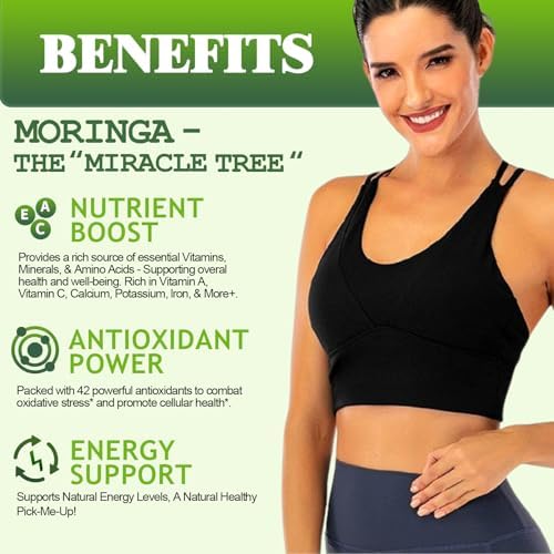 Supercharged Moringa Supplements. A powerful blend of Moringa Oleifera and Turmeric with Black Pepper for Increased Nutrient Absorption. Our standardized Turmeric Extract contains 95% curcuminoids for Maximum Antioxidants and Balanced Inflammation.* Added Vitamin C, Vitamin E to further strengthen your immune system and maintain your overall health.* Together, these ingredients synergize to boost your vitality, nurture your skin*, and facilitate digestion