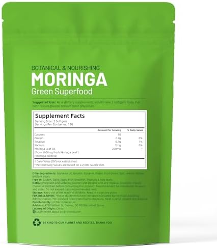 🌿 4-Month Supply, 240 Easy-to-Swallow Capsules: Each Bag Contains 240 Softgels (One serving per day – 2 capsules per serving), Each Serving Contains 6000mg of Moringa Extract, Offering Lasting Value and Convenience for Daily Wellness Routines