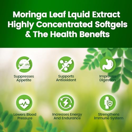 Pure Moringa Softgel, Moringa Leaf Extracts, 120 Day Supply, 30:1 Ultra-Concentrated Liposomal Tech 98% Absorption, Complete Green Superfood, for Energy, Skin, Immune & Gut Health