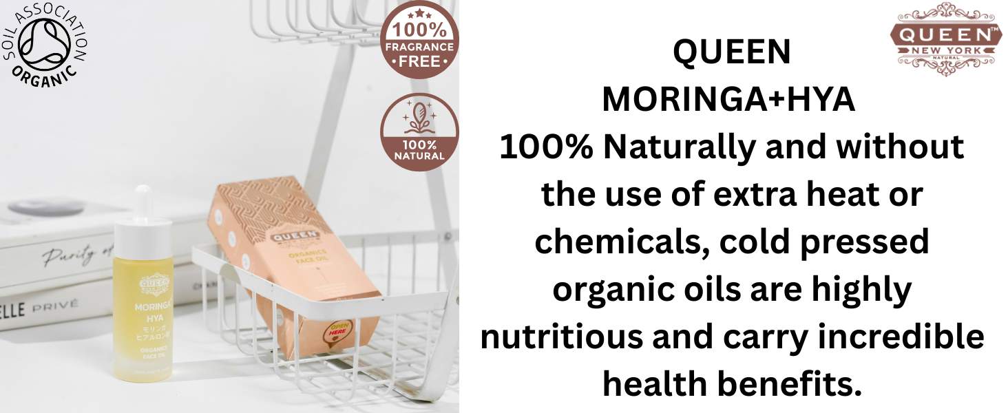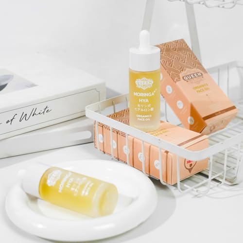 QUEEN MORINGA HYA – Organic Moringa Oil with Hyaluronic Acid for Face – Hydrating & Anti-Aging Facial Oil Serum – Lightweight, Fast Absorbing, Non-Comedogenic, Fragrance-Free Moisturizer – 1 fl oz