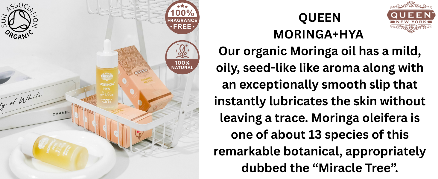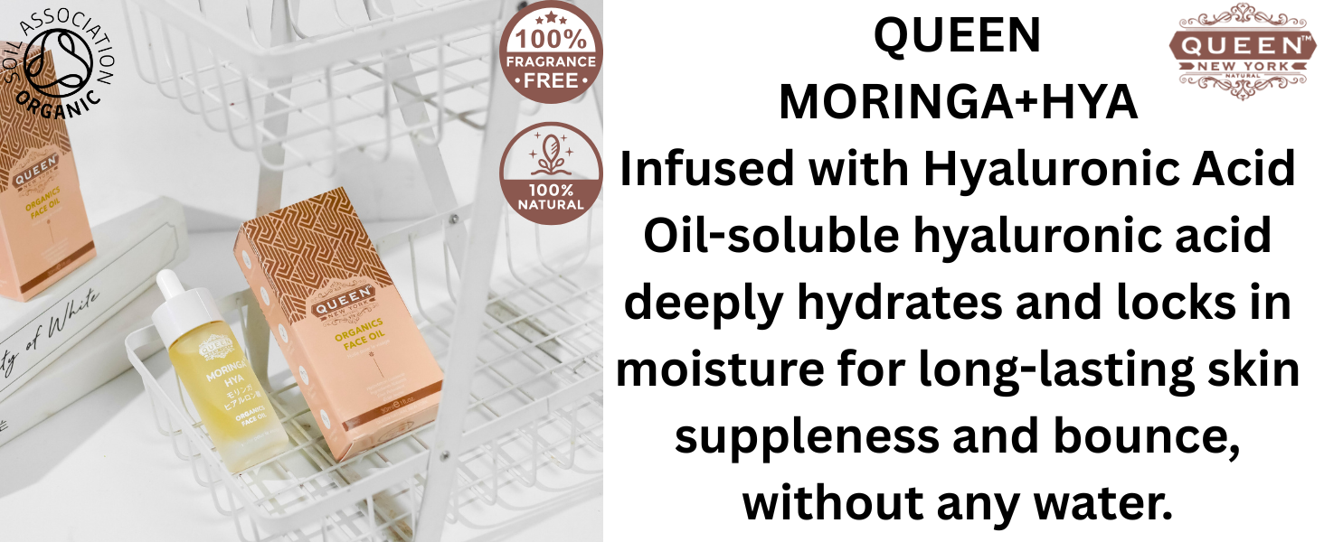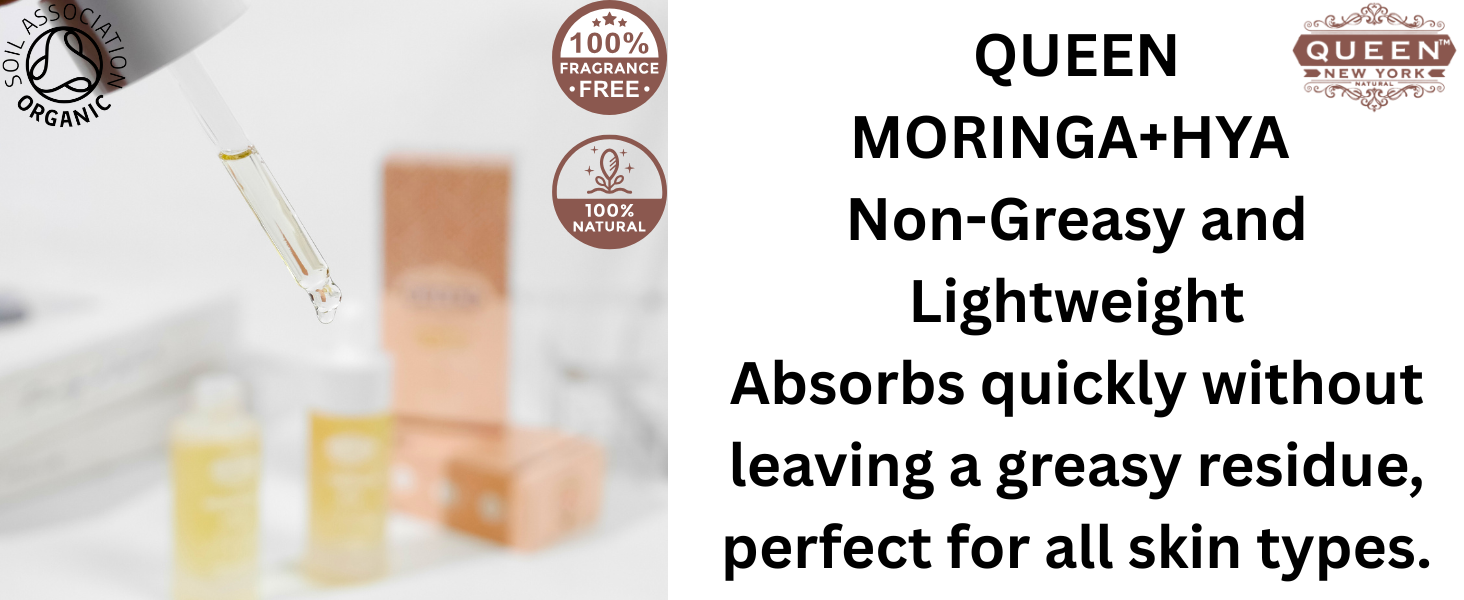 No heavy residue. QUEEN MORINGA HYA melts into the skin for a smooth, silky finish — perfect for layering under makeup or wearing alone.