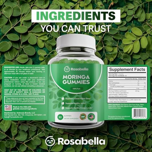 Trusted Quality: Every bottle of Rosabella Vitamin Gummies is manufactured in the USA with globally sourced ingredients using premium moringa leaf extract. Each pack provides 30 gummies—a 1-month supply of natural support for energy, balance, and overall wellness.