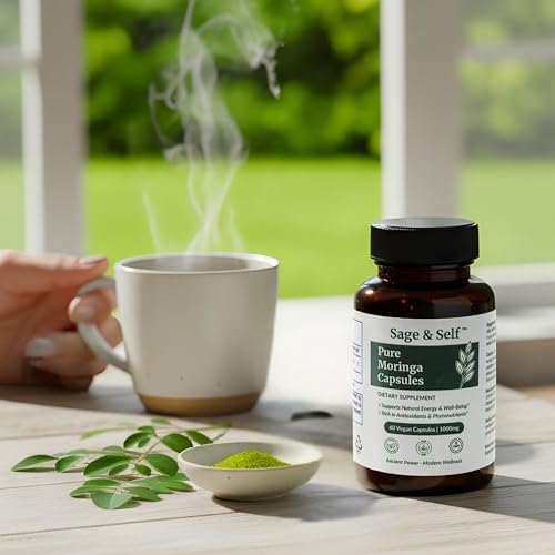 Sage & Self Pure Moringa Capsules – Moringa Leaf Powder for Natural Energy & Daily Wellness – Vegan Herbal Supplement (60 Capsules)