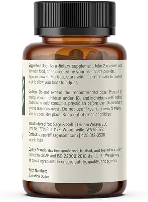 Be the first to review “Sage & Self Pure Moringa Capsules – Moringa Leaf Powder for Natural Energy & Daily Wellness – Vegan Herbal Supplement (60 Capsules)”
