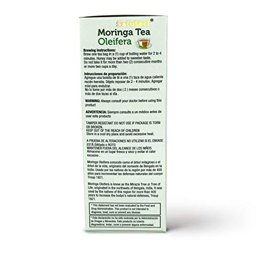 EASY TO PREPARE: This amazing herbal moringa oleifera leaf tea comes in 20 bags that you can prepare within minutes. Add boiled water and let it infuse for 2-4 minutes. The SALUTARI teabags contain only moringa oleifera leaf, without fillers or artificial flavors.