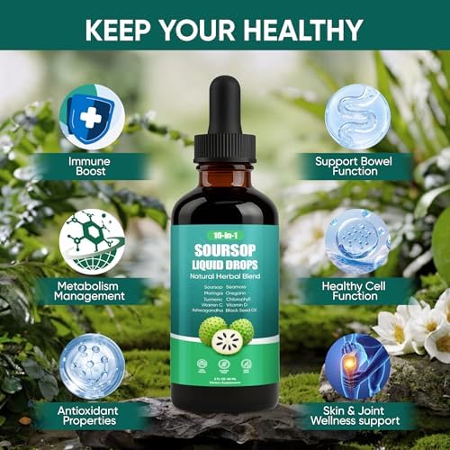 Soursop Drops, 10-in-1 Soursop Liquid Drops with Sea Moss, Moringa, Turmeric, Black Seed Oil, Oregano, Ashwagandha, Immune & Energy Support | Improving Gut Health | Heart Health, Vegan, 2 fl oz (2)