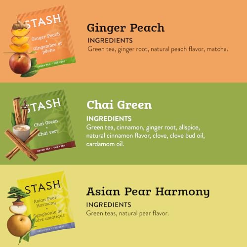 STASH Green Tea Variety Pack – Caffeinated, 6 Boxes of 18-20 Tea Bags Each – Pomegranate Raspberry, Premium Green, Moroccan Mint, Ginger Peach, Chai Green & Asian Pear Harmony
