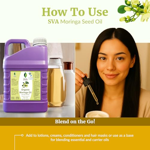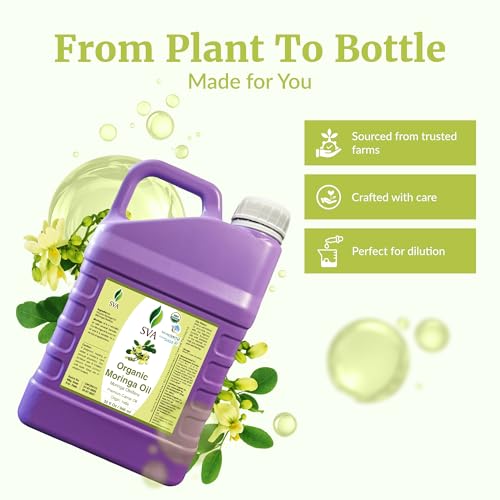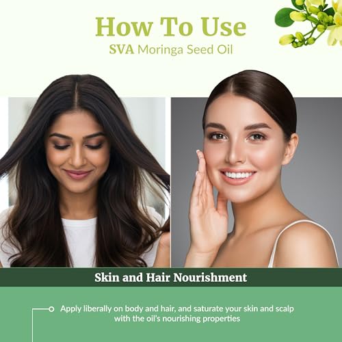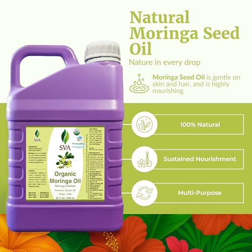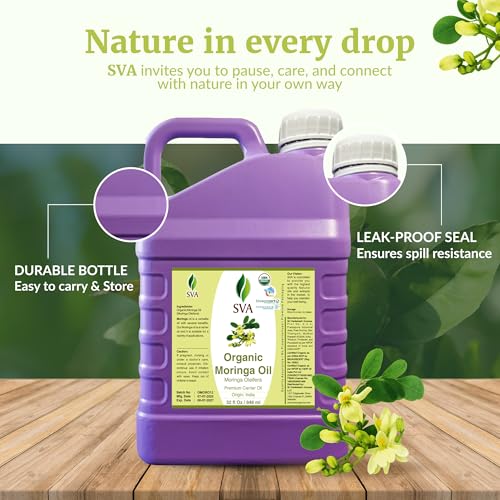 SVA Moringa Seed Oil Organic – 32 Fl Oz – 100% Natural Cold Pressed Moringa Oil – for Face, Skin Care, Hair Care, Scalp Massage & Body Massage – Carrier Oil with Dropper