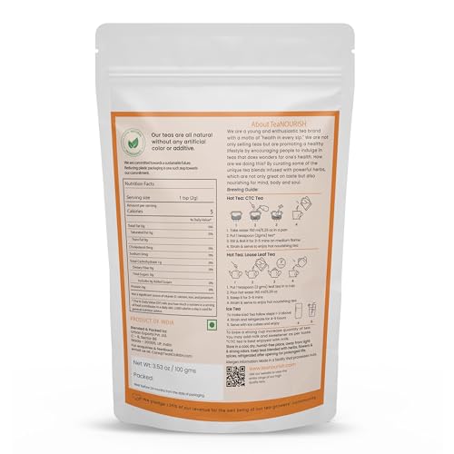 HOW TO MAKE PERFECT HERBAL TEA: Use one teaspoon (2g) per cup, add 150ml of hot water, steep for 3-5 mins, strain & serve to enjoy hot nourishing tea. For refreshing iced tea, refrigerate it for 4-5 hours, serve with ice cubes & enjoy. You may add milk & sweetener as per your taste.