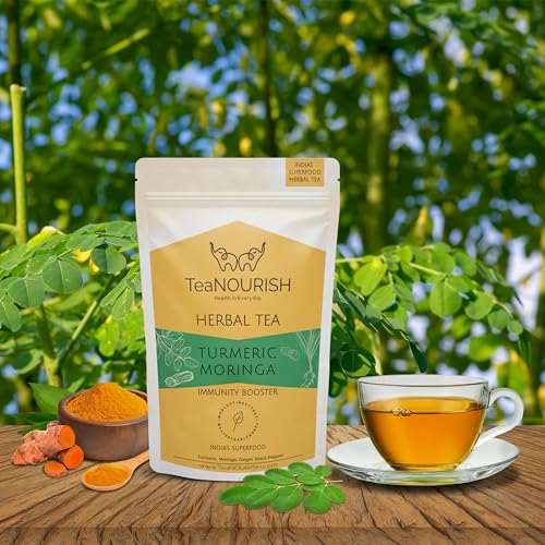 TeaNOURISH Turmeric Moringa Herbal Tea | Blend of Indian Superfoods Turmeric, Moringa, Ginger & Black Pepper | Supports Immunity | 100% NATURAL INGREDIENTS – 3.53oz/100g