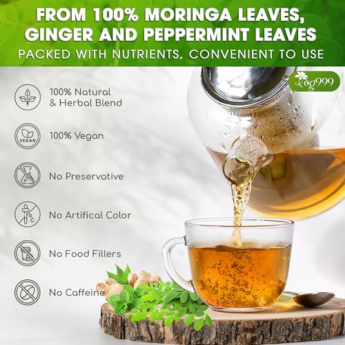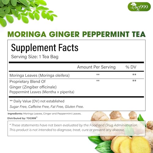 TOG999, Premium Moringa Ginger Peppermint Herbal Tea – 60 Tea Bags – Caffeine-Free, Plant-Based, Non-GMO, Naturally Refreshing Flavor, No Artificial Additives, No Sugar, No Gluten. Vegan