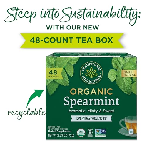 Traditional Medicinals Tea, Organic Spearmint, Supports Everyday Wellness, Healthy & Refreshing – 48 Tea Bags