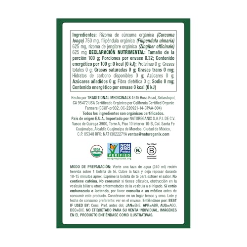Traditional Medicinals Tea Turmeric Meadowsweet & ginger,16 count.