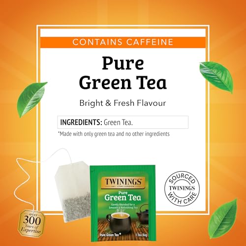 Twinings Pure Green Tea Individually Wrapped Bags, 100 Count (Pack of 1), Smooth & Refreshing, Caffeinated, Enjoy Hot or Iced, 100 Teabags