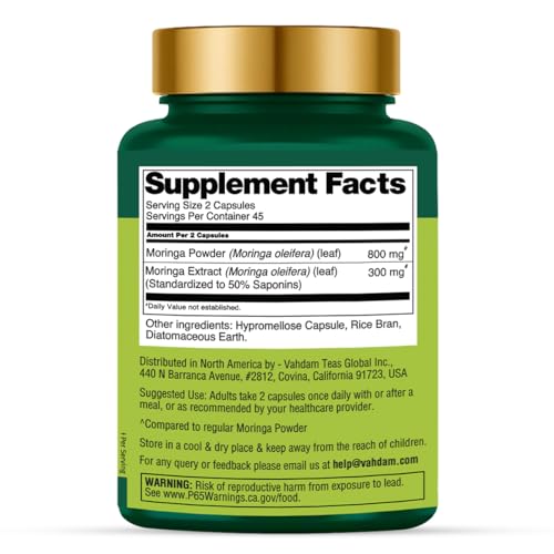 PREMIUM INGREDIENTS: VAHDAM Moringa Capsules is vegan, gluten-free, and non-GMO. They are manufactured with high-quality ingredients from around the world in a B Corp-certified facility with third-party quality control audits