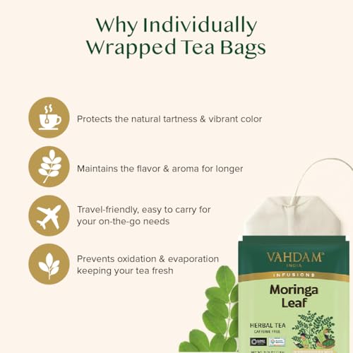 VAHDAM, Moringa Tea (100 Tea Bags)| Caffeine Free, Non-GMO, Indian Origin, Eco-Friendly Individually Wrapped Tea Bags