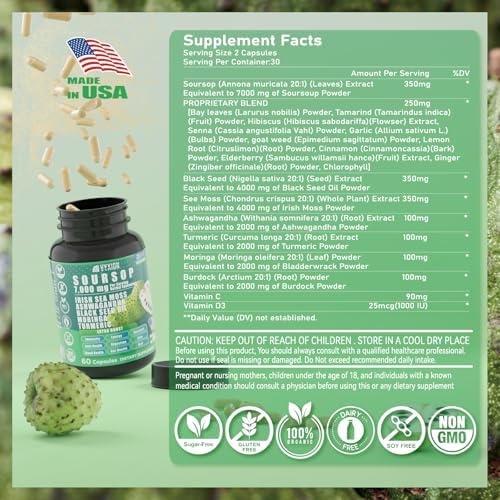 All-Day Energy & Cognitive Boost: Crush fatigue with soursop graviola capsules’ synergy of B-vitamins, iron, and adaptogens like Elderberry and Cinnamon. Guanabana’s electrolytes and Burdock Root’s detox power enhance physical stamina and focus, whether you’re hitting the gym or deadlines.