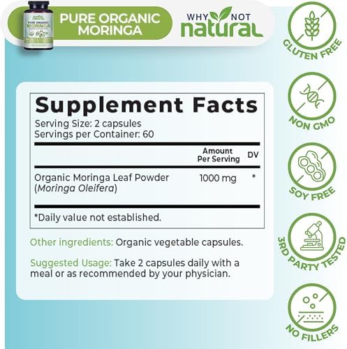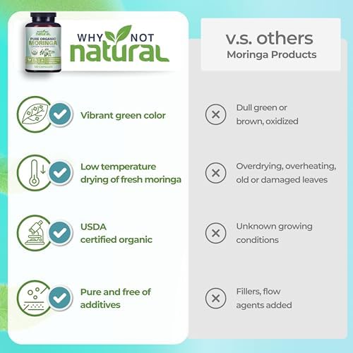 Why Not Natural Organic Moringa Capsules – Green superfood Powder Supplement Pills – Maringa
