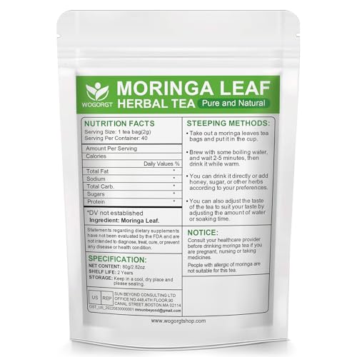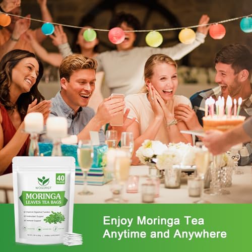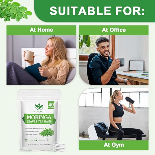 WOGORGT Organic Moringa Tea Bags – Pure Moringa Leaves Herbal Tea from India – Rich in Natural Antioxidants & Supports Daily Wellness – Caffeine Free, Sugar Free, Vegan – 40 Tea Bags